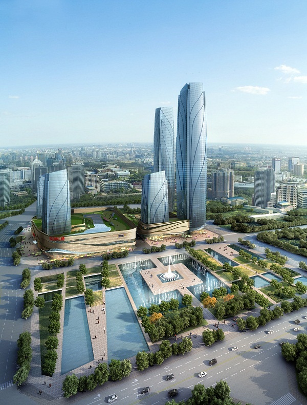 昆明西山萬(wàn)達(dá)廣場(chǎng)是萬(wàn)達(dá)集團(tuán)打造的商業(yè)綜合體項(xiàng)目,享有全國(guó)萬(wàn)達(dá)商業(yè)最高等級(jí),兩棟高316米的甲級(jí)寫(xiě)字樓是昆明第一高雙塔,也是迄今萬(wàn)達(dá)歷史上的第一高樓,同時(shí)也是萬(wàn)達(dá)集團(tuán)第100個(gè)萬(wàn)達(dá)廣場(chǎng)項(xiàng)目,其所處區(qū)域正好是昆明泛亞金融產(chǎn)業(yè)中心園區(qū)核心位置。外形設(shè)計(jì)構(gòu)思是從昆明市市花-山茶花演化而來(lái),從高空向下俯瞰是一朵含苞待放的山茶花,立面為向上盛開(kāi)的花瓣形狀。項(xiàng)目主要采用單元式玻璃幕墻、玻璃肋點(diǎn)支撐幕墻、石材幕墻、框架式玻璃幕墻等系統(tǒng)。